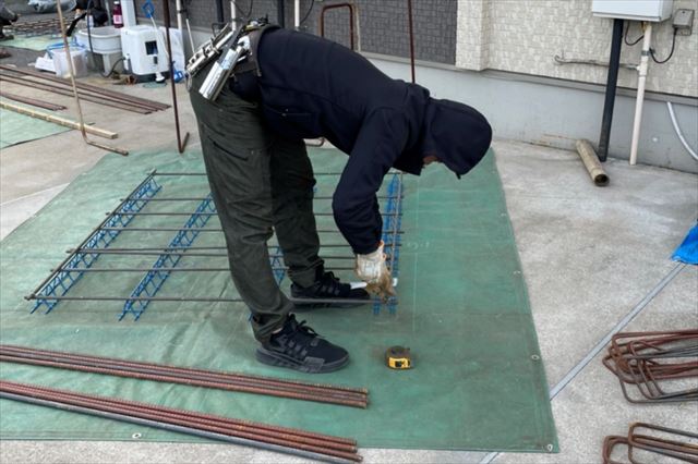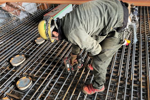 鉄筋を配筋し、鉄筋をつなげる作業を行います。